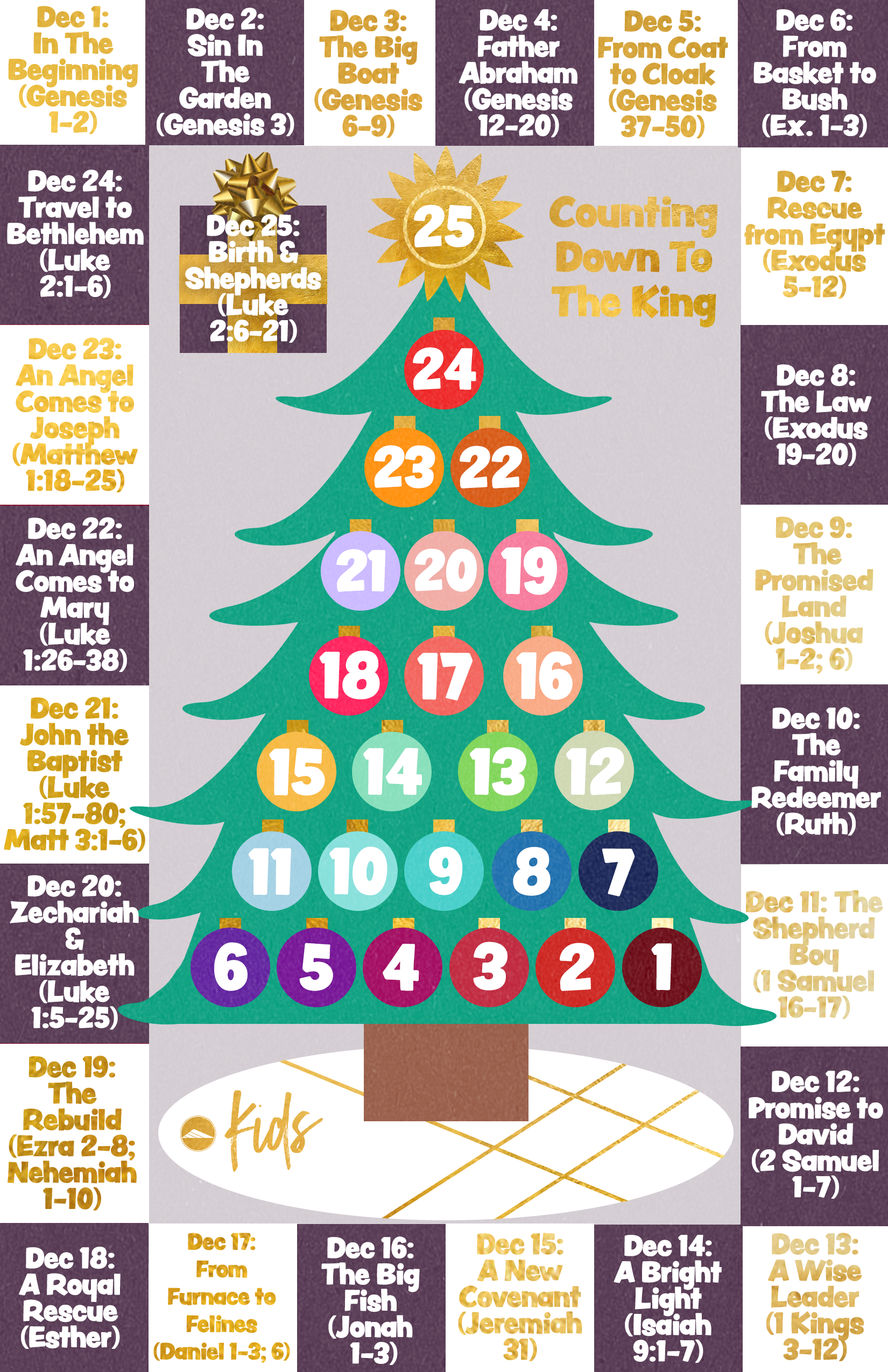 As a Kids Staff, we felt the Lord really press us this year in our desire to equip you with some helpful resources for the upcoming holiday season. This time of year is a wonderful time for intentional family discipleship. This type of discipleship goes deeper than driving around and looking at Christmas lights, or baking Christmas cookies (even though those things are wonderful). It’s more than chocolate calendars and opening numbered doors on a countdown. What children need, and us too if we are being completely honest, is to be reminded WHY we are looking forward to Christmas. To truly be able to look forward, we must look back and remember what led to the birth of our Lord and Savior. We can’t truly appreciate what is coming if we don’t know why it came in the first place.